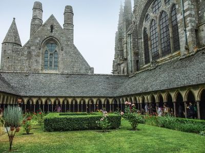 A construção da Abadia de Mont-Saint-Michel começou em 708 quando o Bispo Aubert construiu o primeiro santuário após sua visão do Arcanjo Miguel.