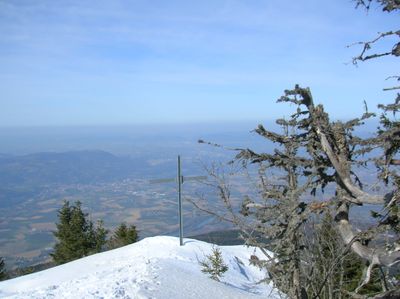 A cruz de ferro da montanha ergue-se no seu cume, oferecendo vistas do vale do Isère, região de Voironnais e territórios de Saint-Marcellin.