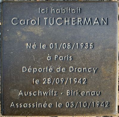 Stoleperstein à la mémoire de Carol Tucherman, stolperstein à Fontenay-sous-Bois, France