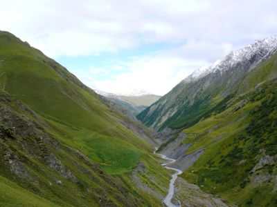 O Parque Nacional Tusheti fica nas montanhas do Caucaso Oriental e apresenta prados alpinos, geleiras e sistemas fluviais em uma ampla gama de elevacoes. O terreno varia de vales baixos a picos altos, criando distintas zonas ecologicas por todo o parque.
