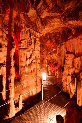 Os visitantes podem acessar dois terços da caverna por passarelas metálicas com cordas, permitindo acesso para pessoas com necessidades de mobilidade.