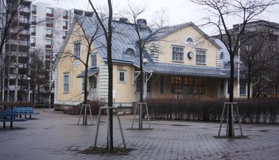 Peace Station, Edificação histórica em madeira em Itä-Pasila, Finlândia.