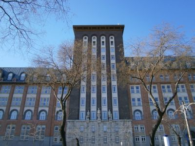 A construção deste centro administrativo começou em 1912 e terminou em 1931, marcando o desenvolvimento do sistema social húngaro.