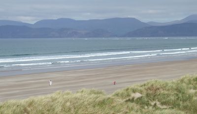 A praia de Rossbeigh estende-se por 7 quilômetros ao longo da baía de Dingle, com extensões de areia fina margeadas por dunas cobertas de grama.