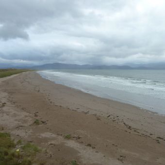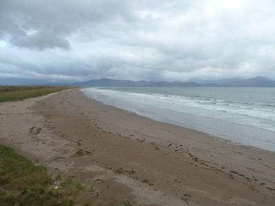 A faixa de areia dourada de 5 quilômetros forma uma península natural que se estende pela Baía de Dingle, cercada por montanhas.