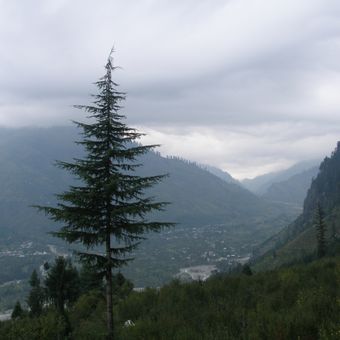 O distrito de Kullu se estende sobre o Himalaia e é moldado pelo rio Beas, que flui através de múltiplos vales desde elevações mais baixas até picos altos. A região apresenta encostas verdes, aldeias espalhadas e templos salpicados por toda a paisagem.