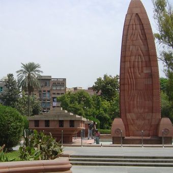 O Memorial Jallianwala Bagh abrange 7 acres com paredes marcadas por balas, estruturas preservadas e um monumento central.