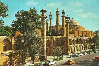 A Mesquita Sepahsalar estende-se por 62 metros de comprimento e 61 metros de largura, com oito minaretes e uma cúpula central de 37 metros.