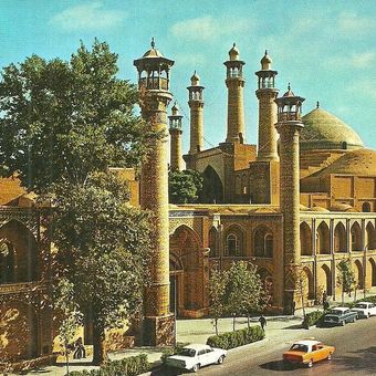 Localizada próxima ao Parlamento iraniano, a mesquita mantém horários regulares de oração e recebe visitantes através do portal principal decorado.