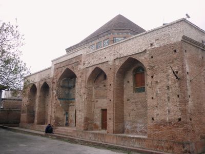 O edifício combina elementos dos estilos arquitetônicos timúrida e safávida, com uma porta de entrada que mantém seu artesanato medieval original.