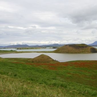 Mývatn é um lago no norte da Islândia com formações vulcânicas diversas e características geotérmicas em toda a paisagem circundante. A costa e a bacia abrigam vida aquática rica e fontes termais que moldam o ambiente local.