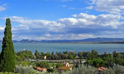 O Lago Trasimeno é uma massa de água na província de Perugia na Úmbria, situada a cerca de 30 quilómetros a oeste da capital regional. A água é pouco profunda e rodeada por colinas suaves cobertas de vinhas e olivais, enquanto três pequenas ilhas habitadas estão dispersas pela sua superfície.
