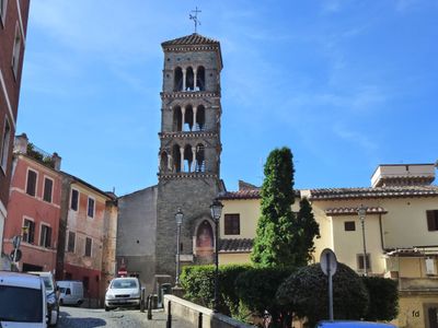 A Basílica Catedral de São Pedro Apóstolo e as vilas renascentistas, incluindo Villa Aldobrandini e Villa Falconieri, definem o patrimônio arquitetônico.