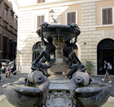 Localizada próxima ao Bairro Judeu, esta fonte fornecia água potável através do sistema do aqueduto Acqua Vergine para a população romana.