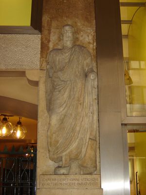 Scior Carera, Escultura romana antiga no Corso Vittorio Emanuele, Milão, Itália.