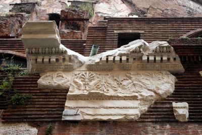 Os elementos decorativos marinhos da estrutura conectam-se às vitórias de Agripa em Mylae, Naulochus e Actium, representando o poder naval.