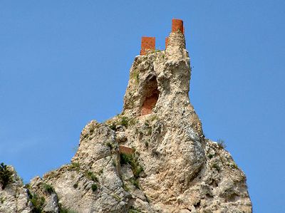 O Castelo de Pietrarossa repousa em uma crista calcária que domina o Vale do Salso com vistas amplas da paisagem circundante. Da fortaleza original restam duas torres de vigilância e seções das muralhas de fortificação.