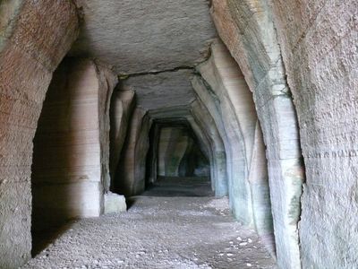 Os pedreiros de Prun moldaram a paisagem local através de técnicas de extração manual, criando amplas passagens subterrâneas que refletem práticas de mineração tradicional. Estes espaços mostram como se extraía a pedra da montanha sem máquinas modernas.