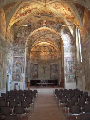 A construção começou em meados do século XV com apoio de uma família local próspera e foi formalmente consagrada no início do século XVI. O espaço foi posteriormente expandido e decorado com obras de arte destinadas a refletir o pensamento religioso daquela época.