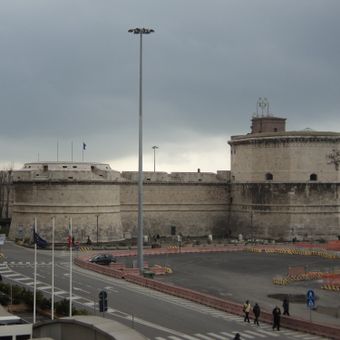 Forte Michelangelo é uma fortaleza renascentista que protege a baía de Civitavecchia com quatro torres cilíndricas nos cantos conectadas por muros defensivos espessos. No seu centro ergue-se uma torre octogonal que domina o porto mediterrânico.