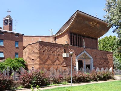 O arquiteto Giovanni Muzio projetou a igreja em 1958 como exemplo de arquitetura eclesiástica moderna do pós-guerra. O projeto marcou uma nova direção no design de edifícios religiosos no norte da Itália após a Segunda Guerra Mundial.