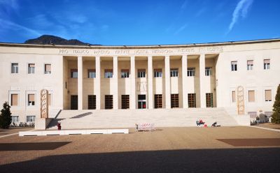 O edifício foi projetado sob o fascismo, mas aberto apenas após a Segunda Guerra Mundial em contexto político completamente diferente. Esta ruptura histórica molda como a estrutura tem sido entendida e utilizada desde então.
