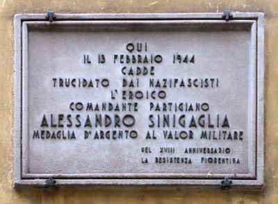 Plaque to Sinigaglia, plaque in memory of the partisan Alessandro Sinigaglia in the place of death