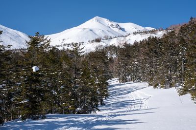 Os campos de neve nas encostas nordeste frequentemente permanecem até aos meses de verão e permitem esquiar quando a maioria das estâncias de esqui japonesas já fechou. Estas pistas de neve naturais atraem esquiadores que querem deslizar sobre neve verdadeira mesmo em junho ou julho.