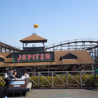 A montanha-russa Jupiter, construída com 60.000 pinheiros de arroz, estende-se por 1.600 metros e atinge velocidades de 91 quilômetros por hora.