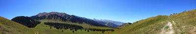 Kok Zhailau é uma área protegida na região de Almaty localizada entre 1450 e 1740 metros de elevação. A paisagem consiste em prados montanhosos, florestas de pinheiros e vegetação variada que cobre as encostas.