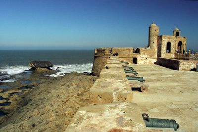 A Sqala da Kasbah se estende ao longo do Oceano Atlântico com dois níveis de muralhas fortificadas contendo canhões espanhóis em bronze.