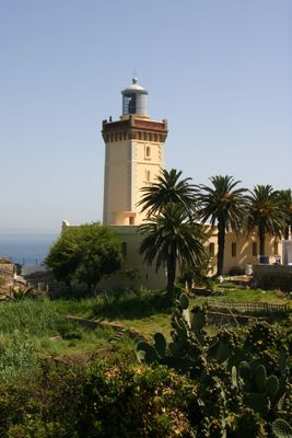 O Farol de Cape Spartel é uma torre branca e azul com 25 metros de altura localizada no ponto onde o Mediterrâneo encontra o Oceano Atlântico. O sistema óptico em seu interior guia navios através de águas perigosas.