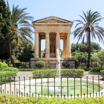 Lower Barrakka Gardens é um parque público em Valletta com caminhos entre a vegetação, monumentos e uma torre de guarda que domina o Grand Harbor e as Three Cities. O espaço combina áreas plantadas com estruturas históricas e plataformas de visualização sobre a água.