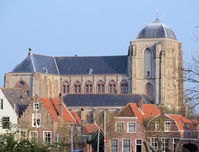 A Grote Kerk é uma igreja em estilo gótico em Veere com abóbadas de pedra, um ambulatório e um anel de capelas laterais cercando o principal espaço interior. Uma torre ocidental robusta se ergue acima do telhado e define o perfil da cidade.