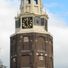 A Montelbaanstoren ergue-se 48 metros acima do canal Oude Schans, com uma base de tijolos vermelhos coroada por uma agulha decorativa branca e um relógio.