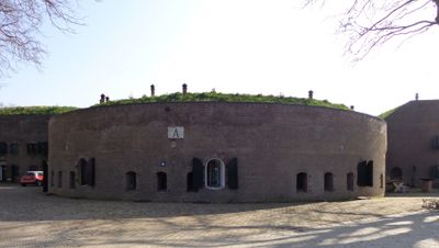 A fortaleza foi construída no século XIX como parte da Nova Linha de Água Holandesa, demonstrando engenharia militar através de sistemas de gestão de água.