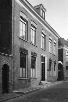 Pand met verhoogde voorbouw onder schilddak afgesloten door forse kroonlijst