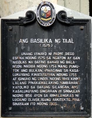 The Basilica of Taal historical marker, NHI historical marker for the Taal Basilica
