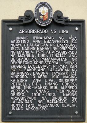 Archbishopric of Lipa historical marker, NHCP historical marker for the Archdiocese of Lipa