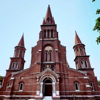 A Catedral do Sagrado Coração é uma estrutura gótica em Lahore com vitrais franceses, altares ornamentados e trabalho em madeira detalhado nos seus corredores e espaços de oração. O edifício apresenta elementos góticos clássicos com arcos altos e interiores cuidadosamente trabalhados.