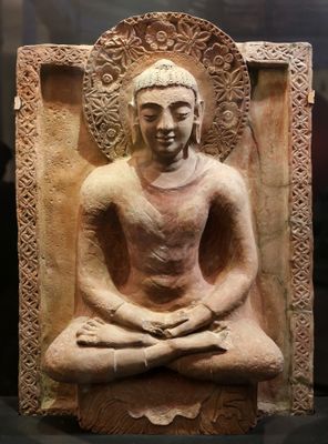 As obras em terracota apresentam influências das tradições Gandhara e Gupta, com imagens detalhadas de Buda e divindades hindus como Brahma.