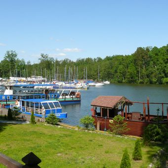 O sistema de eclusas Guzianka foi projetado para permitir que barcos se movam entre diferentes níveis de água na rede de lagos masurianos. Essa infraestrutura fluvial permanece como um testemunho funcional de como as rotas de navegação historicamente moldaram o desenvolvimento regional.