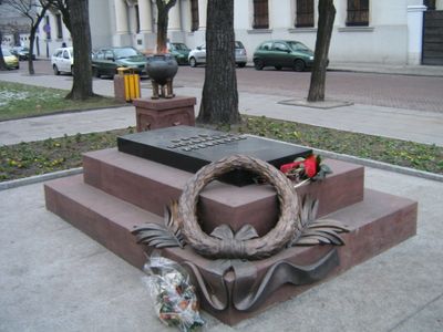 O Monumento ao Soldado Desconhecido em Łódź apresenta elementos comemorativos em pedra e inscrições que homenageiam militares não identificados.