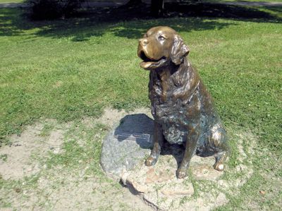A estátua retrata Lokat, um cão terapeuta que participava de sessões de terapia assistida por animais, homenageando os cães de trabalho.