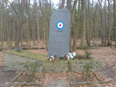 O monumento foi construído para homenagear as contribuições das tripulações da RAF durante a Segunda Guerra Mundial em território polonês.