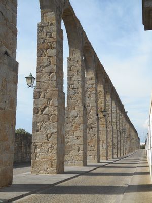 O Aqueduto de Santa Clara é uma estrutura de pedra com múltiplos arcos que transportava água de uma nascente até ao convento, estendendo-se por vários quilómetros. As últimas seções destes arcos permanecem visíveis na cidade, particularmente onde a estrutura passa perto das ruas principais.