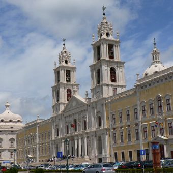 O Palácio Nacional de Mafra combina uma residência real, mosteiro e basílica em um complexo de 40 mil metros quadrados com aproximadamente 4.700 portas e janelas. A estrutura se estende por vários níveis e integra funções religiosas e reais em um conjunto arquitetônico unificado.