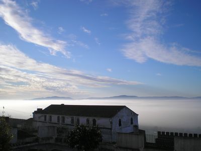 Os olivais e pastagens nas encostas mostram como a agricultura local moldou esta serra ao longo do tempo. A paisagem que se observa reflete séculos de tradição agrícola que continua a caracterizar o território.