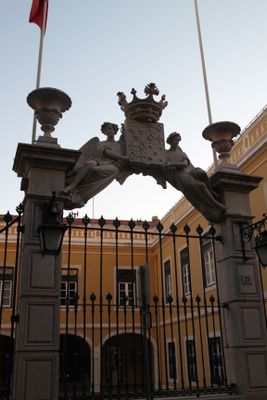 Dois anjos de pedra e o brasão dos Condes de Penafiel, coroado, adornam a elevação principal da estrutura.