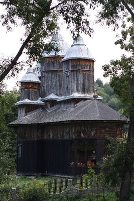 Um campanário de madeira construído em 1935 mostra a artesanato especializado que continuou após a reconstrução do século 18. As torres hexagonais da igreja principal apresentam elaboradas decorações de janelas de ferro que capturam a luz.